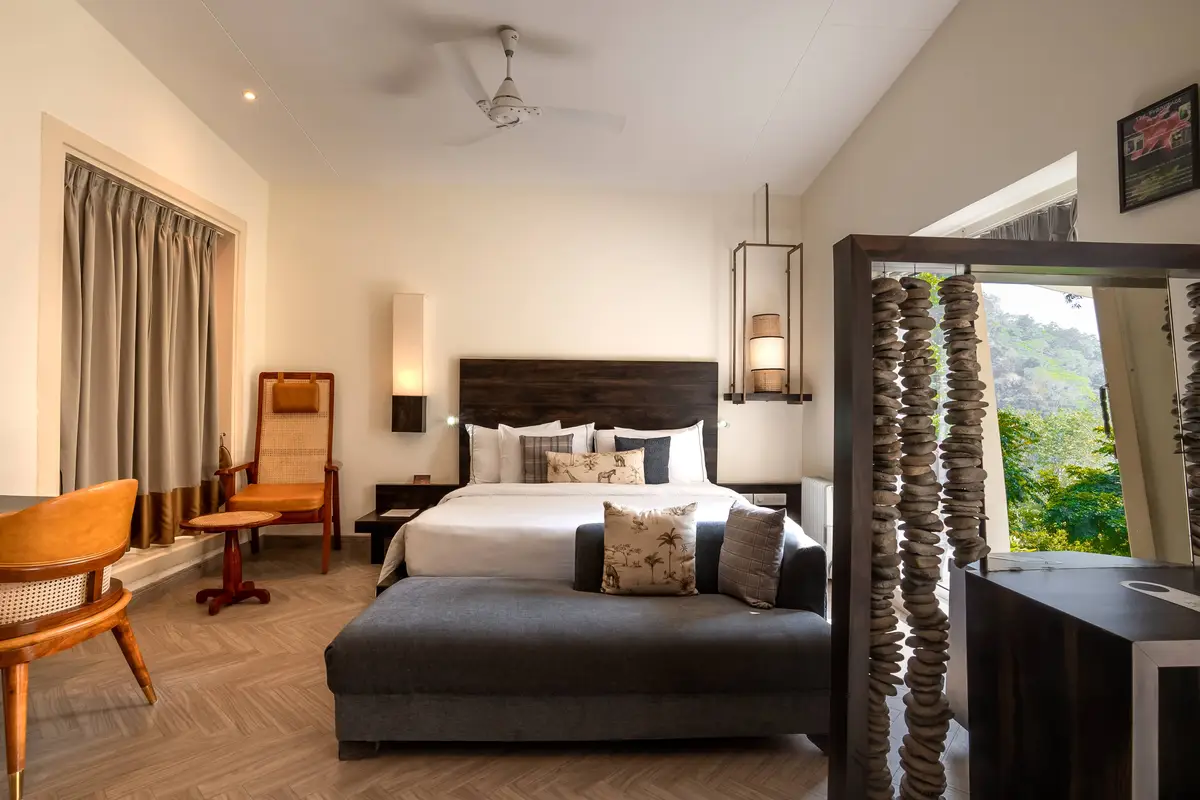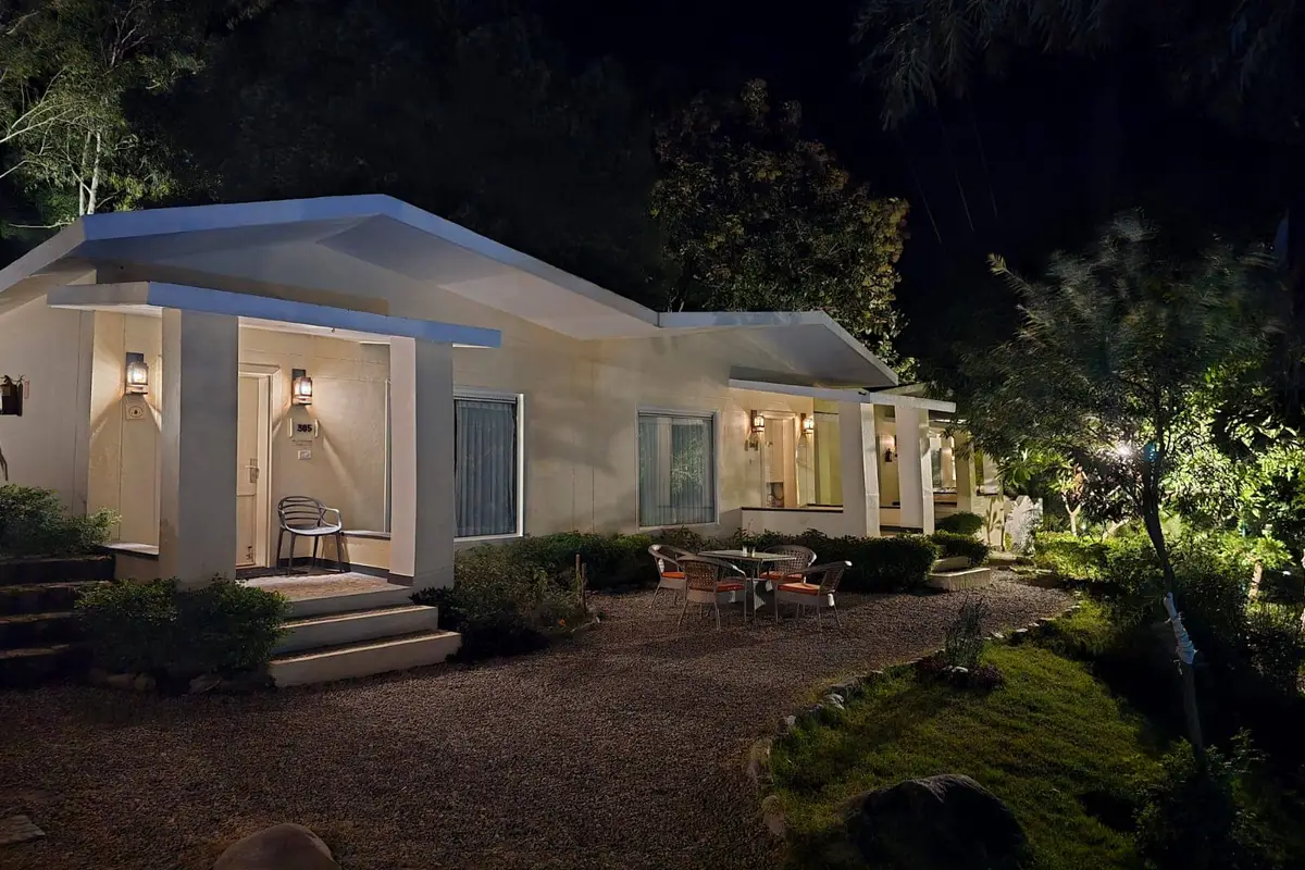 Offering Luxury to its finest the cottage incorporates a mini bar, bath robes and bathroom slippers. The visual aesthetics of the forest theme, enhanced with lush planters, earthy tones, and forest-inspired decor, creates a refreshing nature-infused ambiance. Enjoy modern luxuries including working desk, luxurious mattresses, sit-outs, and ductable air-conditioning units, phones in both cottages as well as in bath, 24/7 hot and cold water access, shower cubicle with jets of fresh spring water and sit-outs makes the stay in the cottage an unforgettable one.