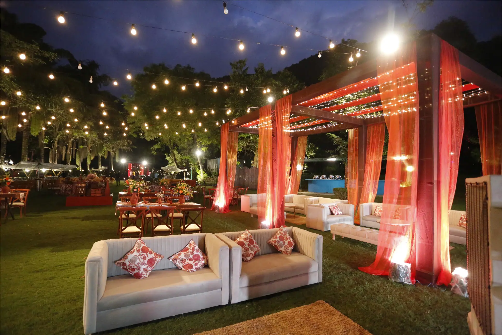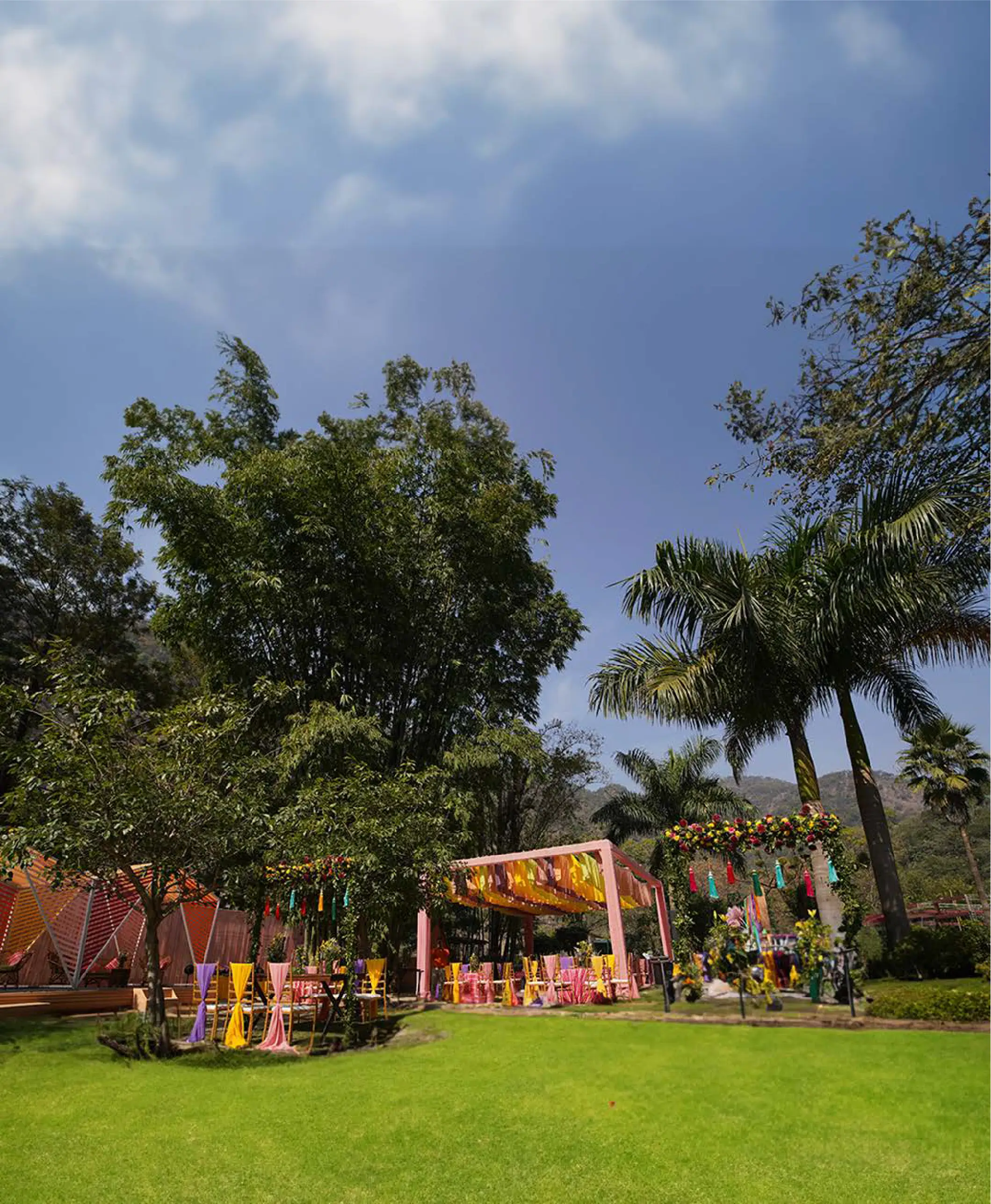 Solluna Resort offers accommodation with luxury cottages. Our expansive banqueting space, complemented by three outdoor lawns, is perfect for weddings and events. From intimate ceremonies at Solluna Plaza to grand receptions for over 2000 guests, every moment is curated for perfection amidst nature's tranquility.
