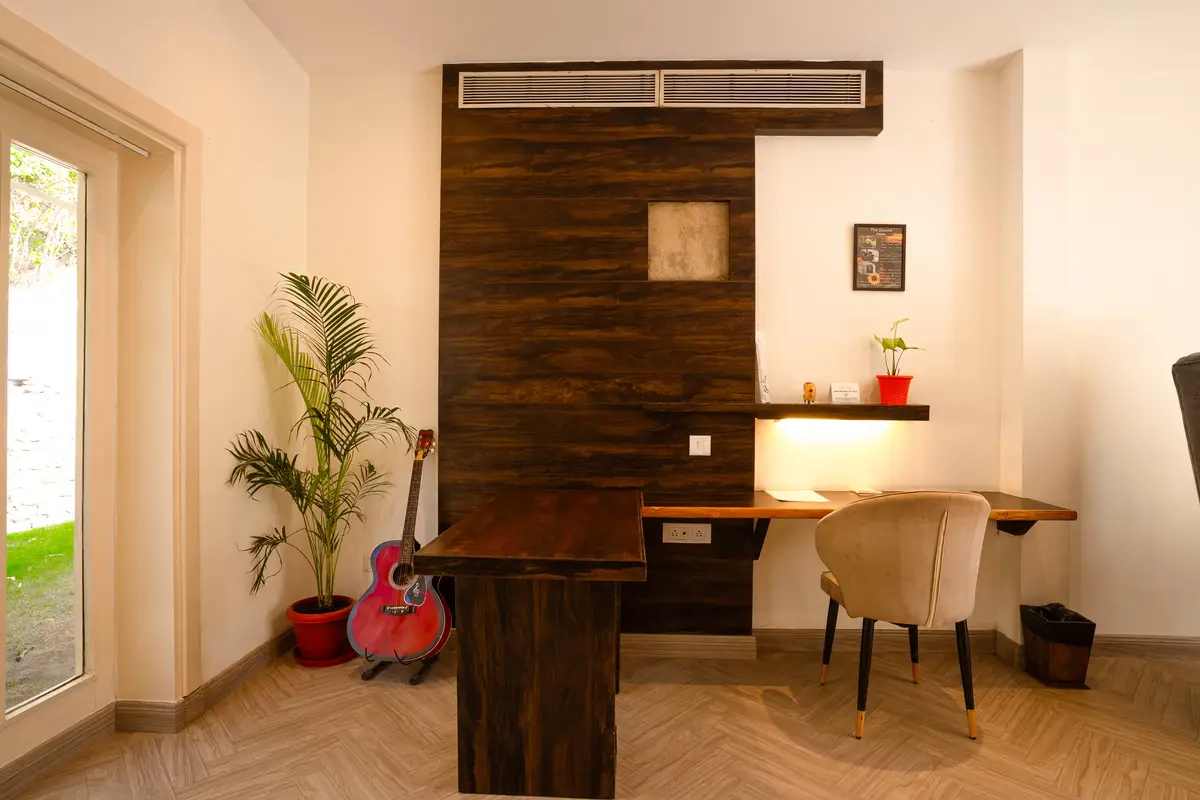 The uniqueness of the cottage lies in the huge water body housed in the cottage veranda giving a soothing sound of dripping water that can be controlled at the resident’s wish. The gentle sound of chirping birds in the sit out every morning together with the relaxing sound of the water flowing is a blessing to the tired city ears. The in housed beautifully structured small lawns allow complete privacy to the guests, creating an opportunity for a sun bath or soaking in the rain with the loved ones.